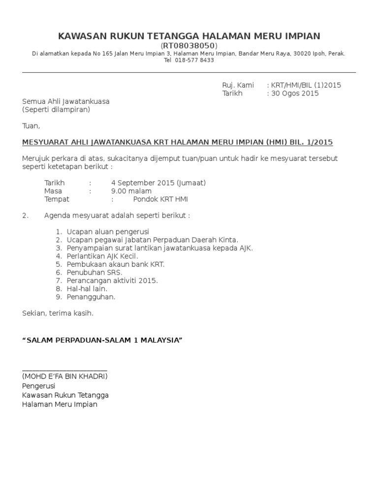 Surat Jemputan Mesyuarat Kawasan Rukun Tetangga Halaman Meru Impian Pdf