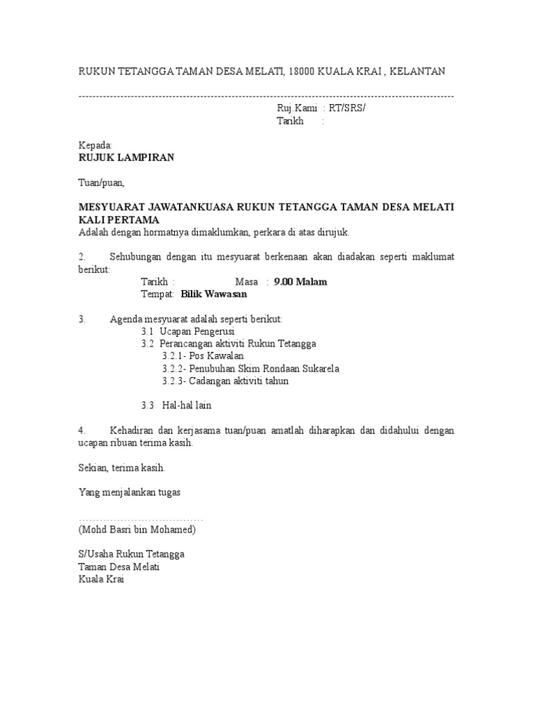 2021 1726 july 349 contoh surat panggilan mesyuarat kelab rukun tetangga. Https Www Jpnin Gov My Sites Default Files Slide 20modul 20latihan 20rt 20 20modul 202 20prosedur 20ms 20iso 209001 202008 20dan 20pekeliling 20rukun 20tetangga 20dan 20skim 20rondaan 20sukarela 202012 0 Pdf. Dalam Contoh Kop Surat Rukun Tetangga Gawe CV telah memilihkan tema atau template yang terbaik untuk dijadikan inspirasi ide ataupun acuan dalam penulisan surat anda.